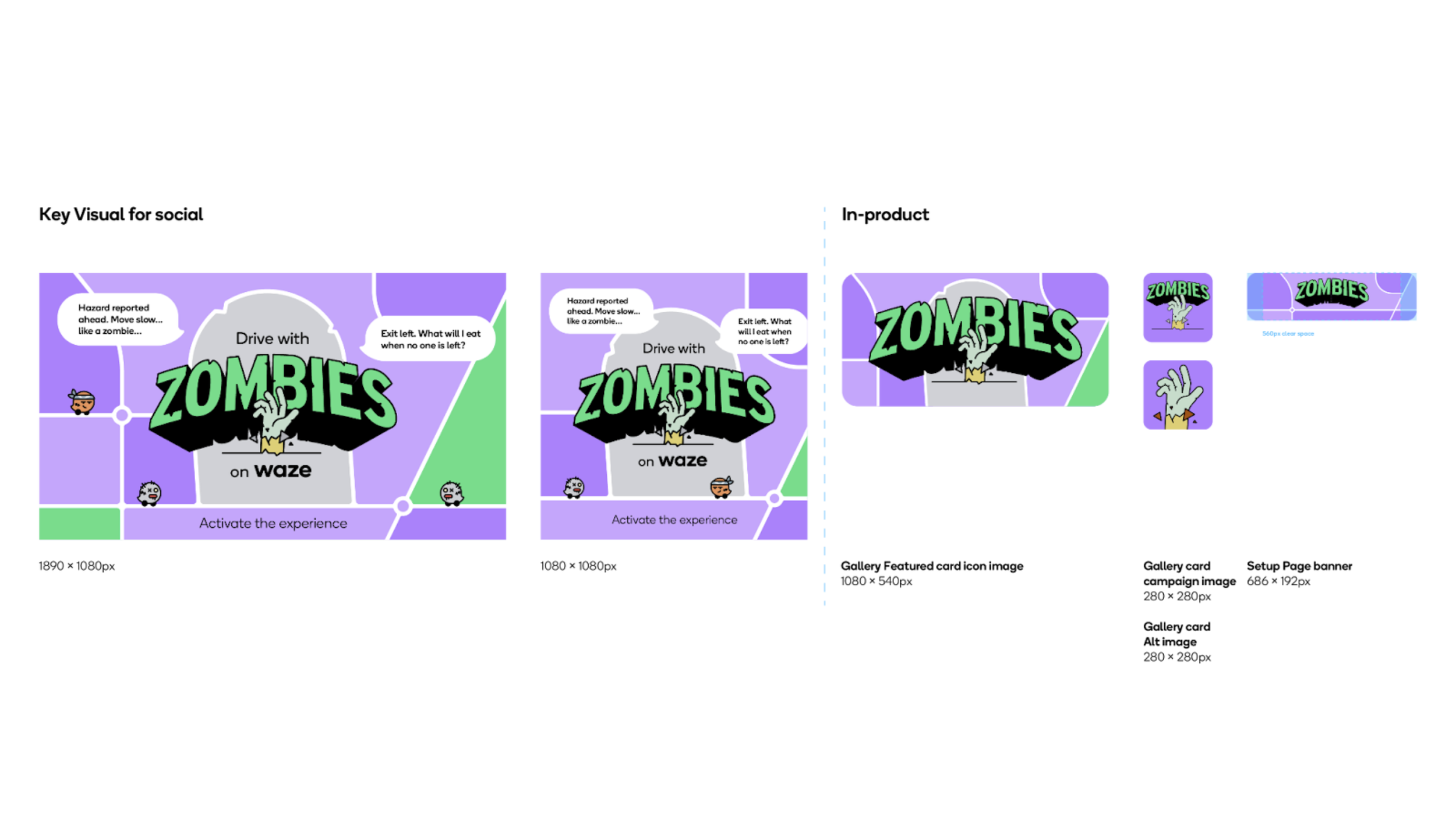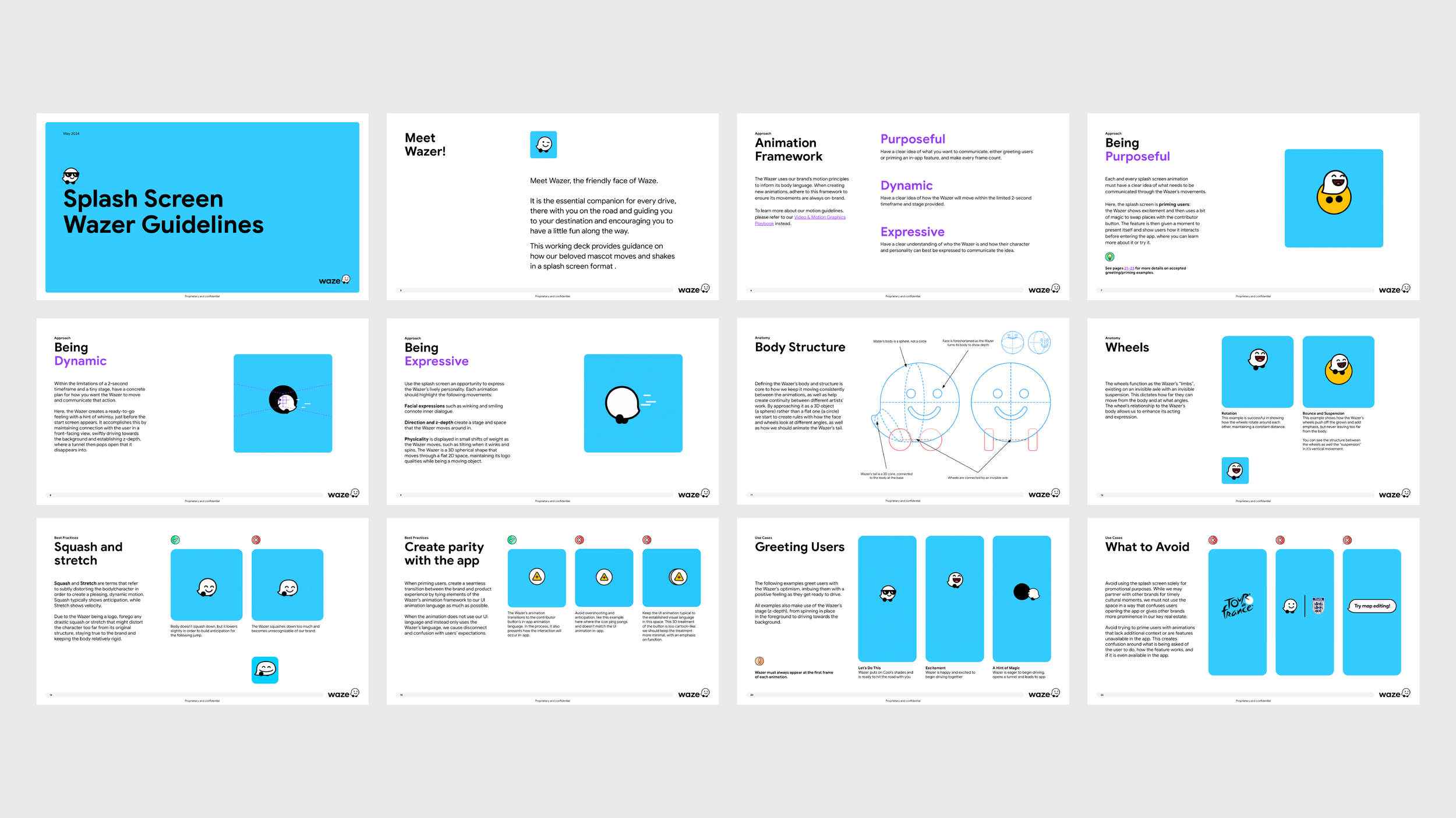 The following work is a snapshot of some of the conceptual, exploratory, and realized work we accomplished. It includes but is not limited to: building Go-To-Market brand expression guidance for all the places Waze can show up (mobile, projected, and built into your car's infotainment system), using the app splash screen to define the animated world that our mascot Wazer lives in, creative strategy for the immersive sidekick feature Customize Your Drive, streamlining our email system, celebrating our internal work culture and external community of our thousands of map editors, and partnership campaigns like Tour de France.