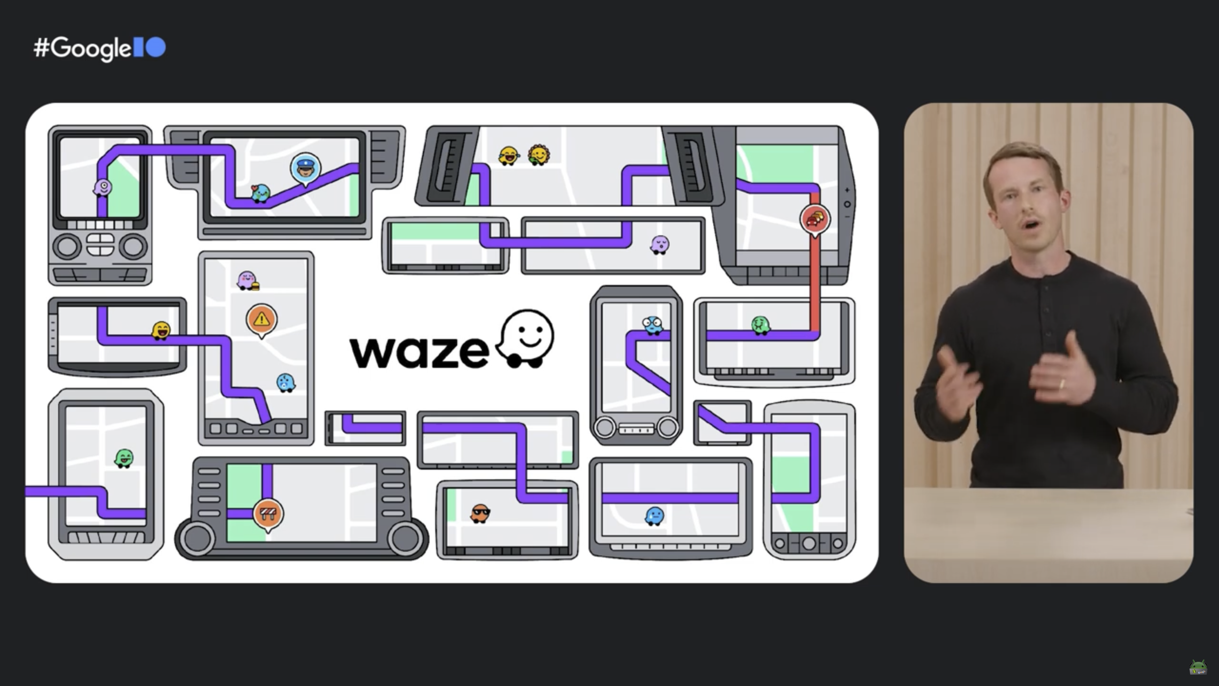 Announcing Waze available for all cars with Google built-In at I/O 2023.